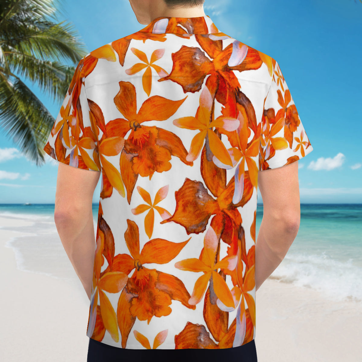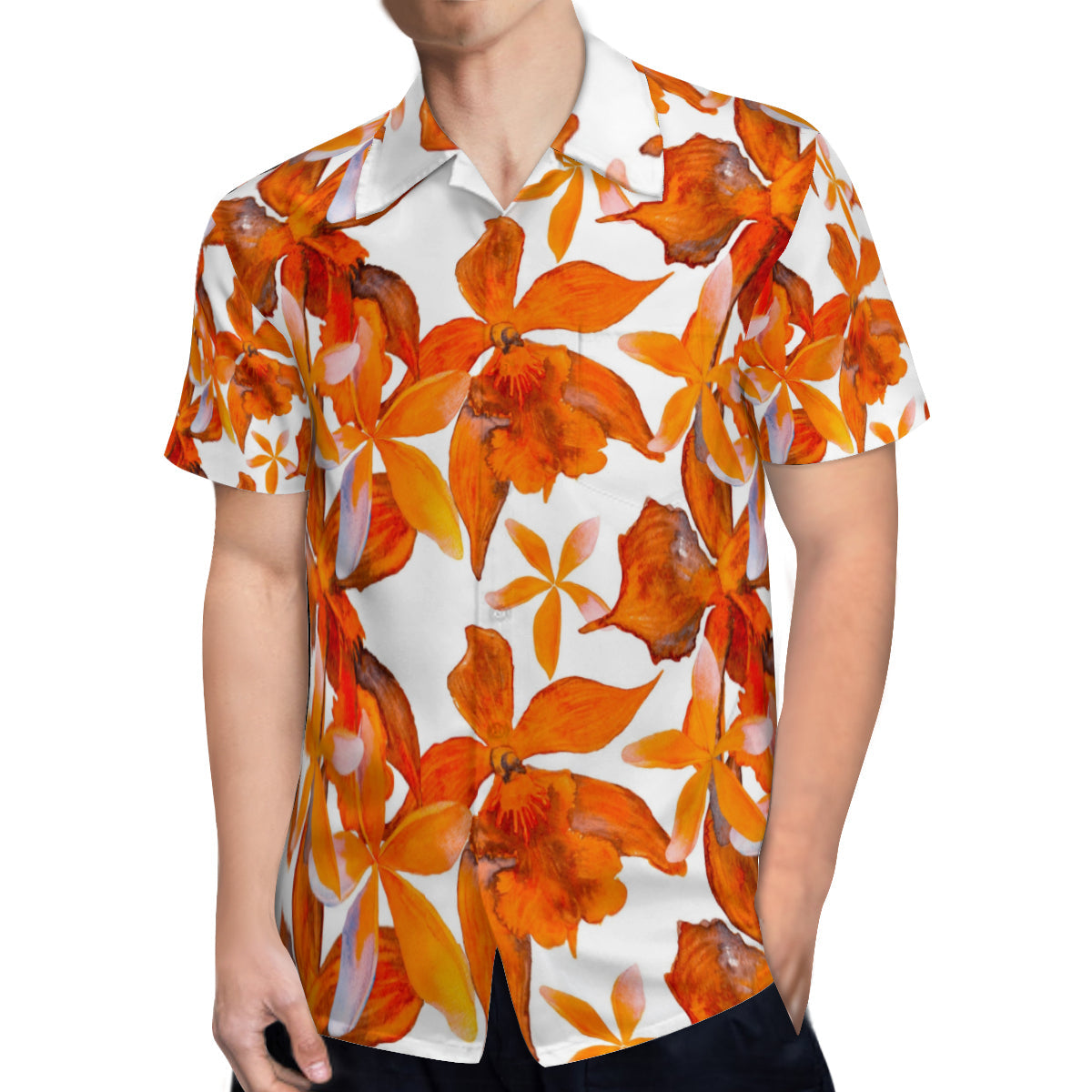 Hawaiian shirt - Orange and white flower design